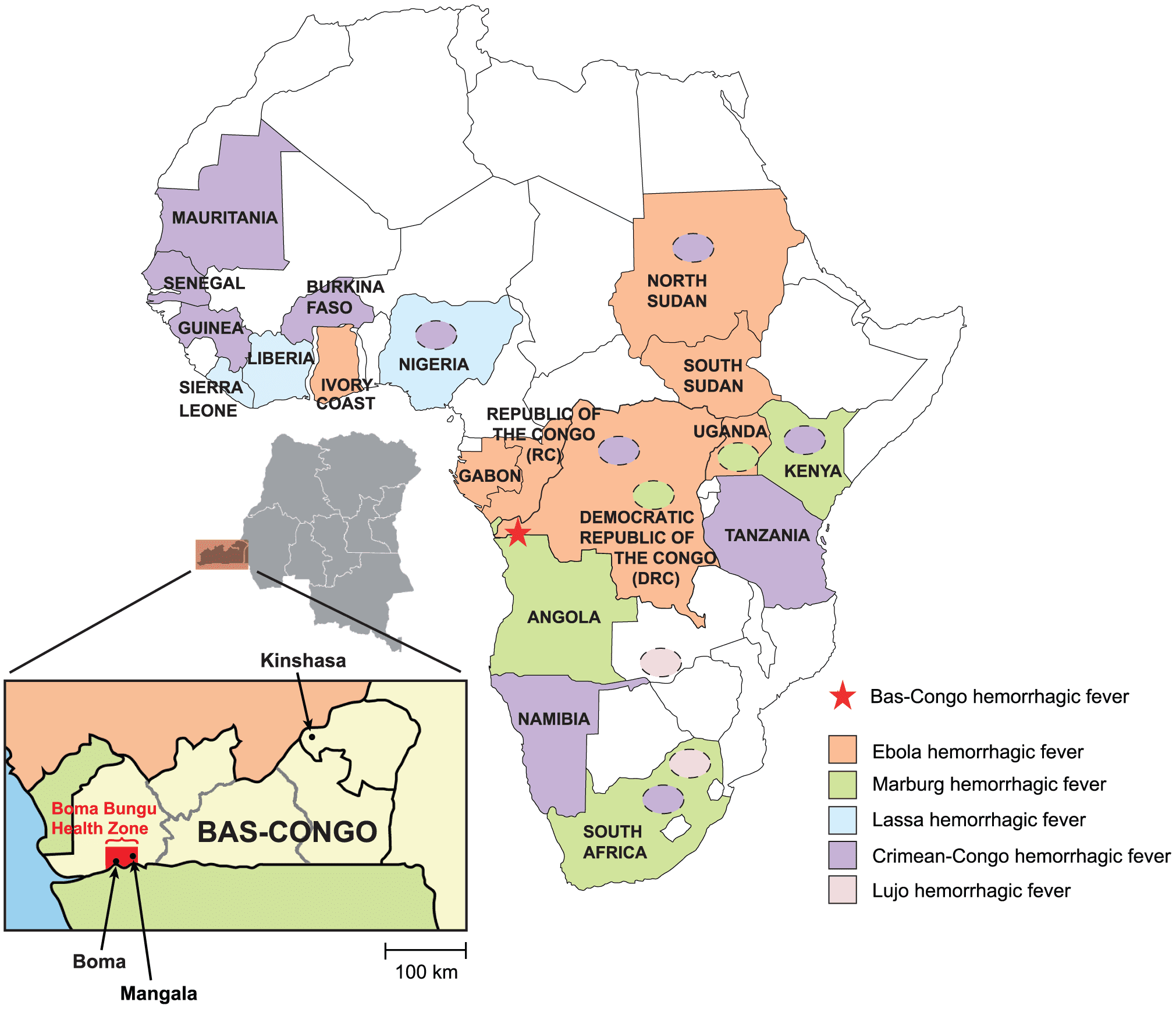 Three cases of hemorrhagic fever that occurred in the spring of 2009 were noteworthy because none of the typical viral suspects could be detected in one patient. Two were young (13, 15 year old) students in the village of Mangala, Bas-Congo province, Democratic Republic of Congo. They lived near each other and went to the same school. Both arrived at the local health center with typical symptoms of hemorrhagic fever, and both died 2-3 days later. The third case was a 32 year old male nurse at the health center who was involved in the care of the other two patients. He developed symptoms of hemorrhagic fever but recovered within a few days.