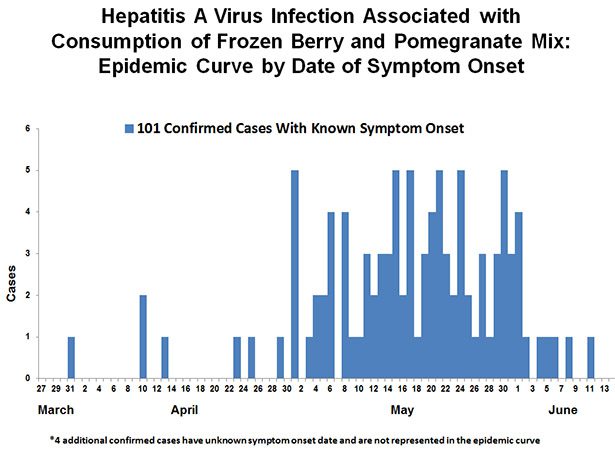 There are six genotypes of HAV that circulate worldwide. According to the CDC, the virus strain causing this outbreak is HAV genotype 1B, which is often found in North Africa and the Middle East but is rarely isolated in the Americas. Genotype 1b caused a 2013 European outbreak linked to frozen berries, and a 2012 British Columbia outbreak in which a frozen berry blend was implicated. In the BC outbreak the berry blend contained pomegranate seeds from Egypt. This is likely why Townsend Farms recalled the berry mix when they found that it contained pomegranate seeds processed in Turkey.