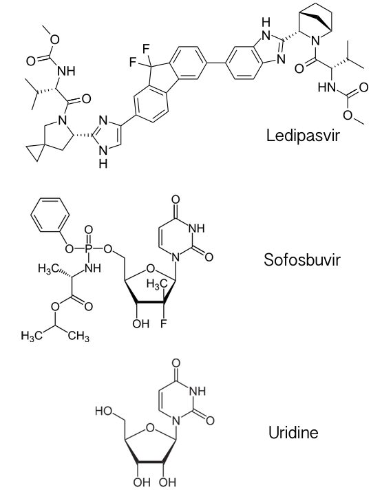 The new hepatitis C drug, called Harvoni, is a mixture of the antiviral drugs ledipasvir and sofosbuvir. Ledipasvir (pictured) is an inhibitor of the hepatitis C virus protein NS5A, which has multiple roles in the viral replication cycle that include RNA synthesis and virus particle assembly. The mechanism of NS5A inhibition by ledipasvir is not known. Sofosbuvir is a previously licensed inhibitor that targets the viral RNA-dependent RNA polymerase. It is an analog of the nucleoside uridine, one of the four building blocks of RNA. Sofosbuvir is utilized by the viral RNA polymerase, leading to inhibition of viral RNA synthesis.