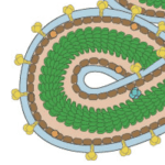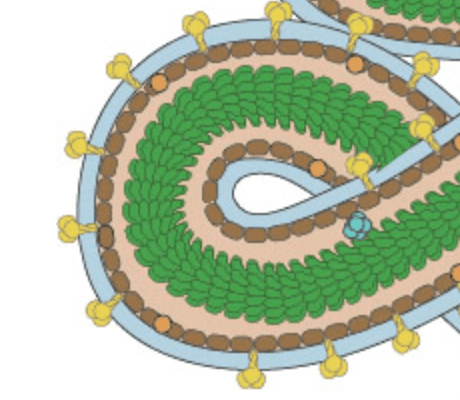 Embedded in the membrane of the filamentous Ebola virus particle are many copies of the
