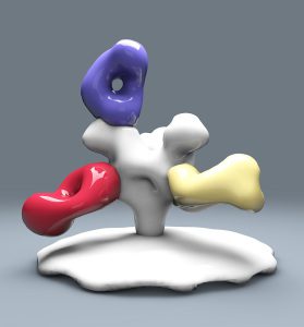 To determine how the antibodies bind the virus particle, they were individually mixed with purified Ebola virus glycoprotein, and the structures were determined by electron microscopy and image reconstruction. The results, shown in the illustration, indicate precisely where each antibody binds to the Ebola virus glycoprotein. The individual antibodies colored red (c2G4), yellow (c4G7), and purple (c13C6) are bound to a single Ebola virus glycoprotein in white, with the viral membrane below (Image credit).